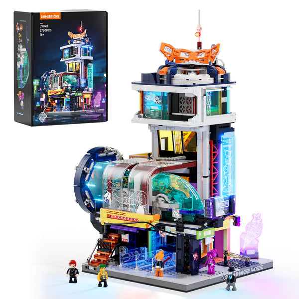 Now imagine stepping into the future, a world full of neon lights, flying trains, and tall glowing towers. The Floating Train Station (L9098) takes you straight there. It’s one of Lumibricks’ most exciting and detailed builds.