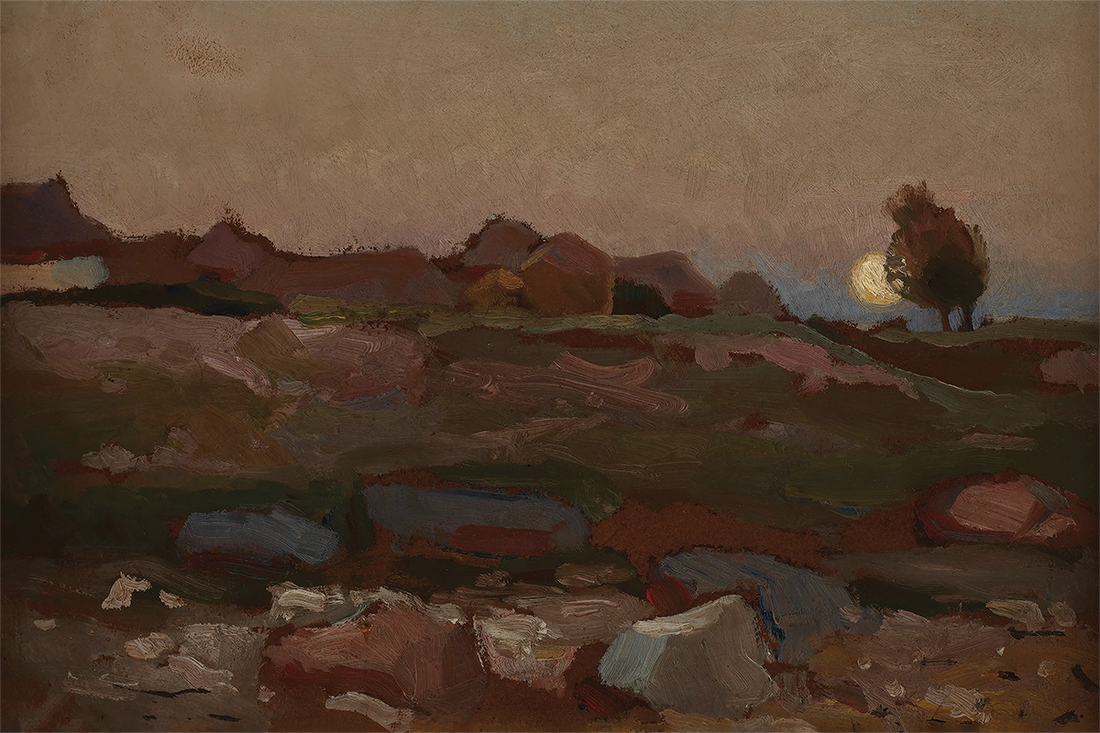 Old-sounding piece feels like a quiet memory. It's soft, gentle, and easy to live with. It has mellow tones - it is faded, as if it were something hidden in an old photo album. The light in the landscape evokes a sense of tranquillity. It doesn't shout for attention. Instead, it quietly fills your space with comfort. Put it somewhere above a bed, a sofa, or even a hallway. It brings a peaceful mood without being boring. That is what makes it special; it camouflages but still has its impact.
