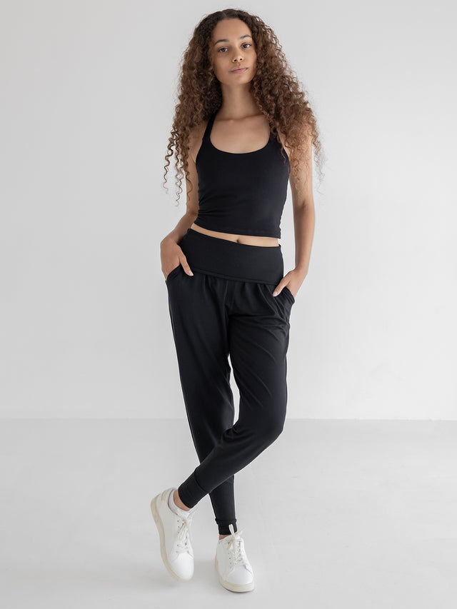 These pairing options range from tanks and tees to blouses and matching IMBŌDHI tops for a sleek monochrome look. In short, the Pippa Pant is a foundational piece in any wardrobe, one that delivers comfort, movement, and timeless appeal all in a single design.