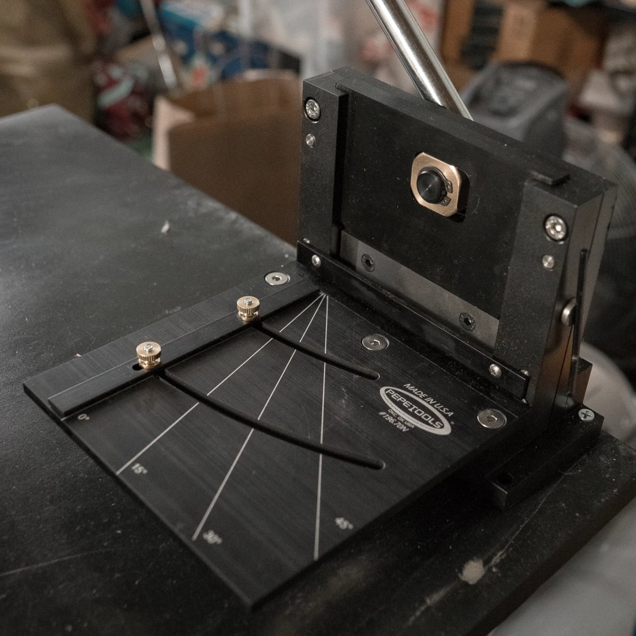 The Pepetools 4-inch Guillotine Shear is designed for jewelers who require cleaner cuts on smaller, predictable sheet metal. Although it appears small, it has sufficient power to cut gold, silver, and copper steadily up to 20 gauge. The blades of the A2 tool steel are sharpened to last longer and aligned so they always act the same way with each pull of the handle. The latest model has an all-black finish, giving it a clean appearance without requiring realignment of all mechanical components, making it easier to use. The first distinction is that it has a side-operated handle, which provides better control over the cutting motion. Another advantage of this design is that it is comfortable when making repeated cuts. The miter table is supplied with a standard allowing you to switch between straight lines and angled blanks without additional measuring equipment. With thin strips, the shears handle them well, only slightly twisting on the thinnest ones during the scissors' action.